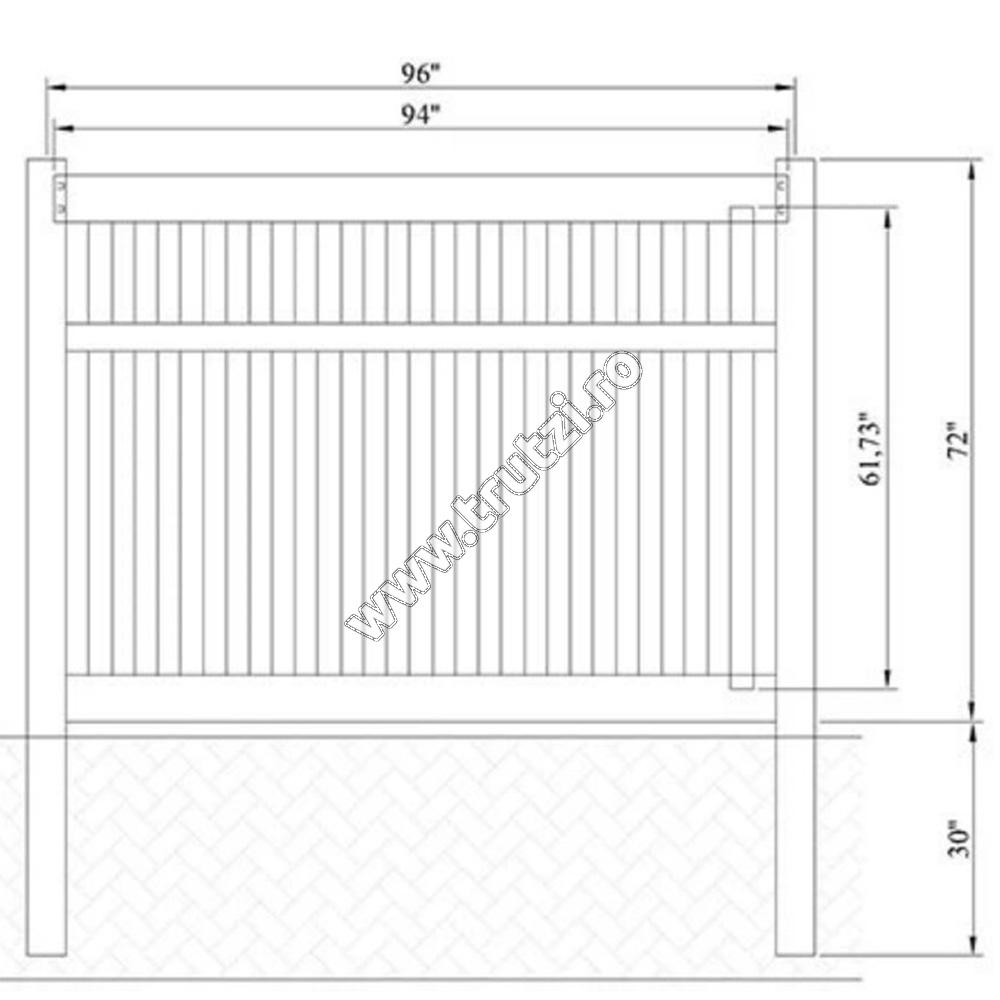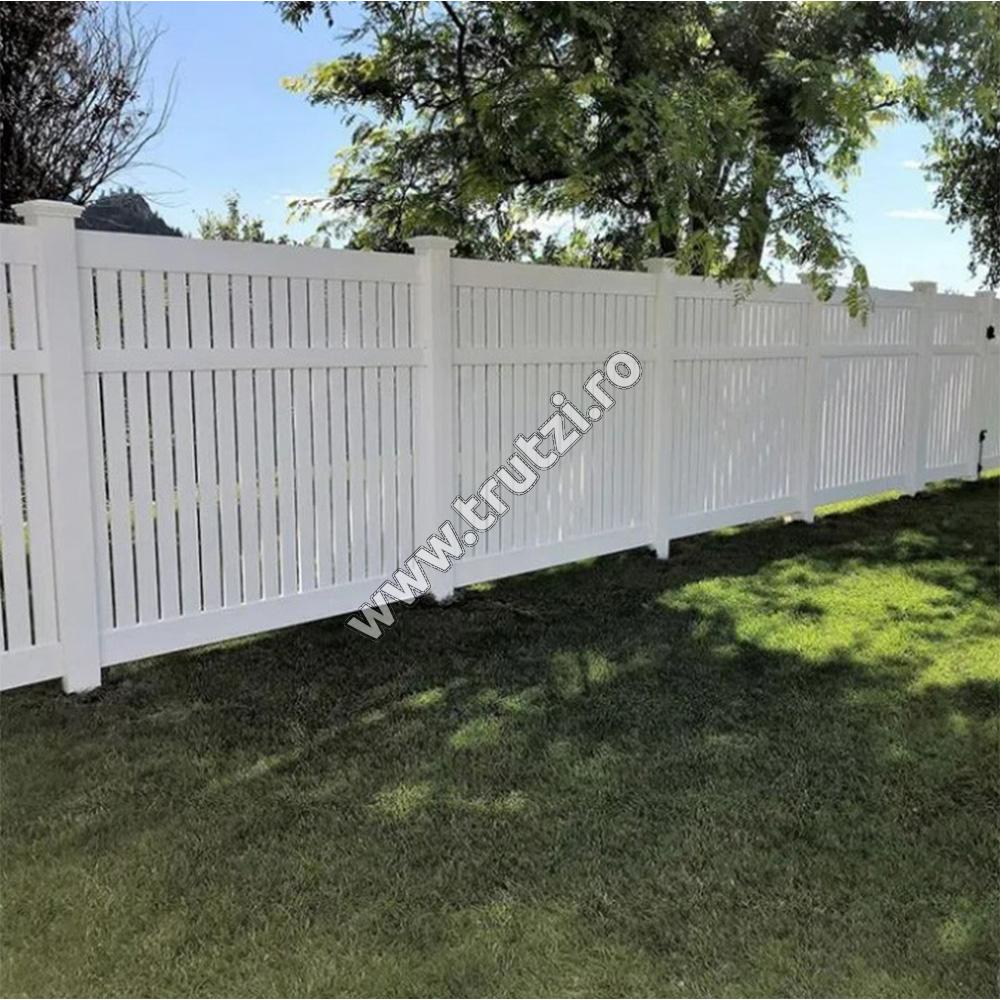Important: Vă rugăm să aveți în vedere că sistemele de împrejmuire nu pot fi livrate prin serviciul de curierat clasic din cauza volumului și a greutății mari. Ele se livrează prin flota proprie, iar timpul de livrare depinde în funcție de fiecare locație.Gardurile din PVC au devenit un înlocuitor foarte popular pentru lemn în ultimii ani. PVC-ul are proprietăți diferite față de soluțiile tradiționale de gard și vin cu o serie de avantaje de luat în considerare la momentul achiziției unei noi soluții de împrejmuire.Avantaje:Gardul din PVC este mult mai trainic decât gardul din lemn și este de aproape 5 ori mai rezistent.PVC-ul își menține aspectul și nu necesită vopsire.Majoritatea PVC-ului este de aceeași culoare pe toată adâncimea materialului și, prin urmare, nu necesită refinisare.Este ușor de curățat cu materiale de curățenie de uz casnic. NU se descompune ca lemnul și nu ruginește. Materialul este construit pentru a rezista și a se menține în starea originală ani de zile. Este flexibil și nu se va rupe la fel de usor ca lemnul. Necesită foarte puțina întreținere.Gardul din PVC este menit să fie un produs de lungă durată, cu întreținere redusă. Pe masură ce industria evoluează, progresele în producție au facut din PVC un concurent puternic pentru aplicațiile comune de gârduri.