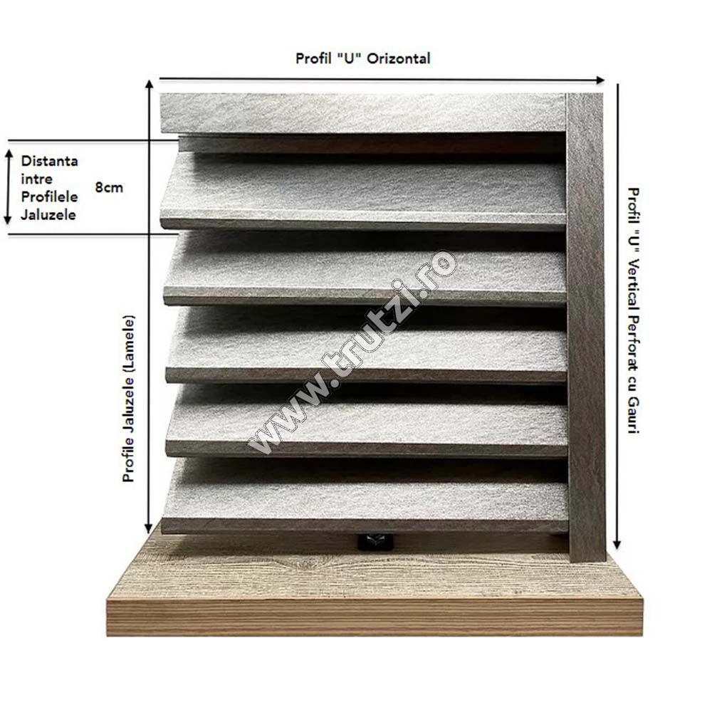 Aceste produse se comercializeaza in kit complet compus din jaluzele gard, profile intaritoare si popnituri