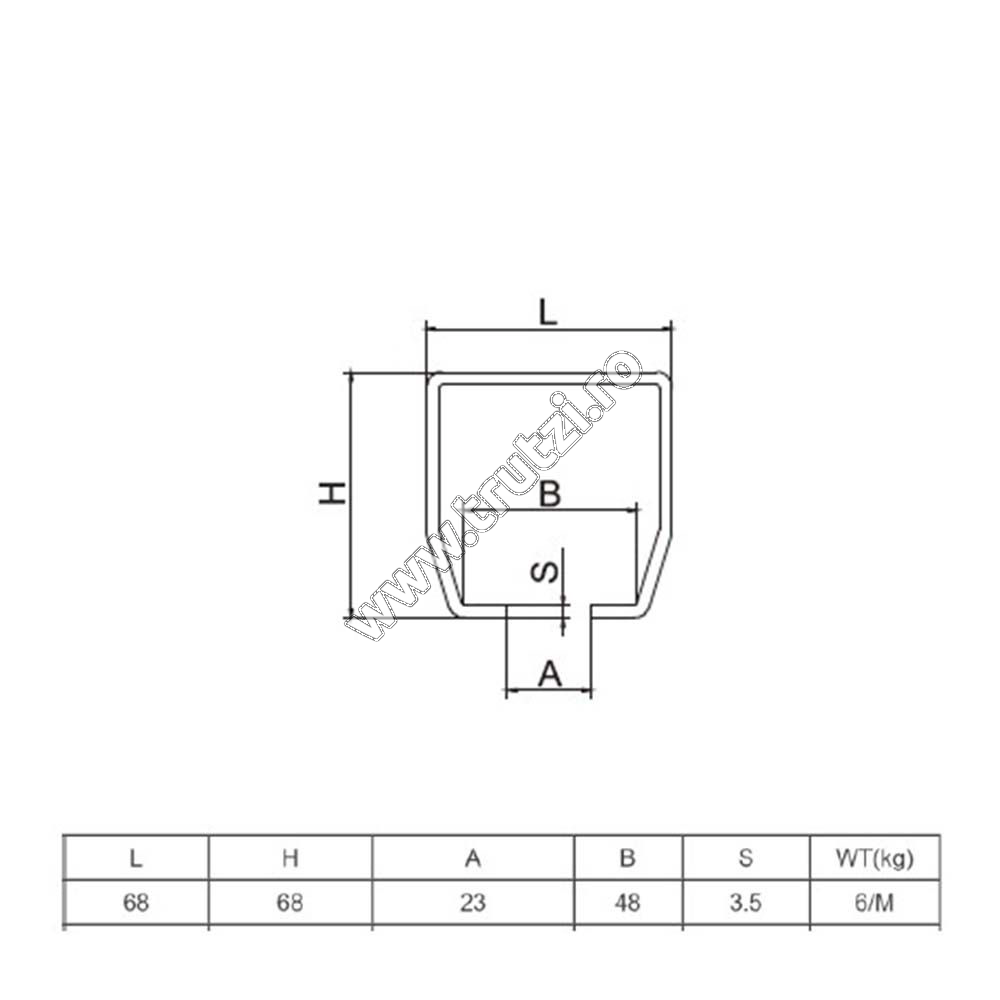 SINA ZINCATA 68X68MM, GR. 3.5MM, L 5.8M, 500KG, 80×80